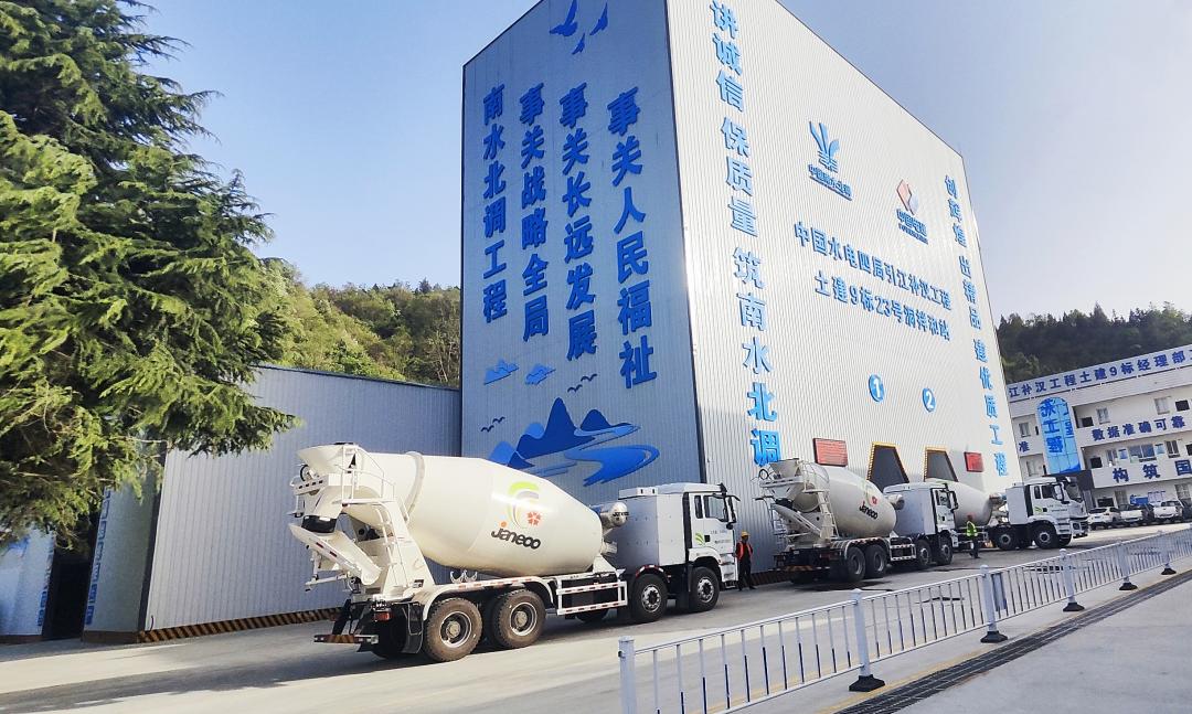 近日,在引江補漢工程施工現(xiàn)場,山推多套CD412-S35純電動攪拌車有序地奔波在攪拌站和施工現(xiàn)場,成為建設(shè)的一道亮麗風景線,高效助力著這一重大水利工程建設(shè)。