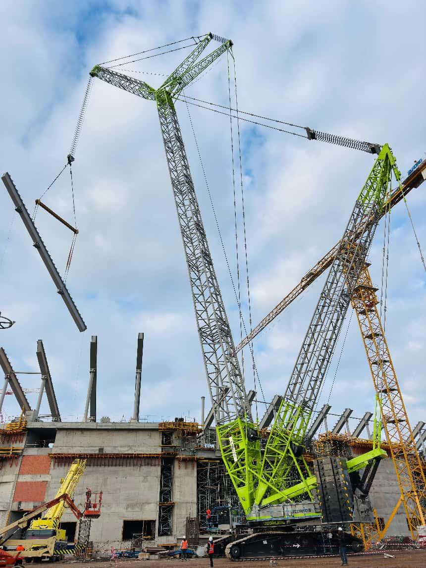 2030年世界杯足球賽的腳步漸近,主辦國摩洛哥正加速推進場館建設。參與該項目建設的中聯重科ZCC9800W履帶式起重機是工程機械領域的“巨無霸”和“明星產品”,在摩洛哥的工地上成為場館建設的核心吊裝設備,展現了卓越的起重性能。
