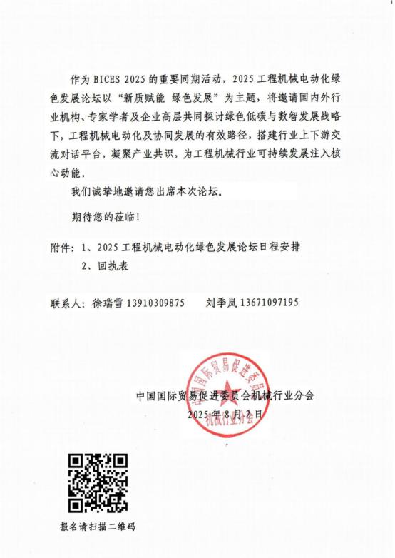 BICES 2025同期程機(jī)械電動(dòng)化綠色發(fā)展論壇報(bào)名開(kāi)啟