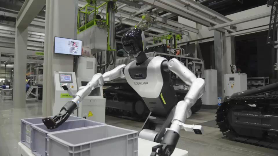 中聯(lián)重科自主研發(fā)的人形機器人在裝配產(chǎn)線作業(yè)