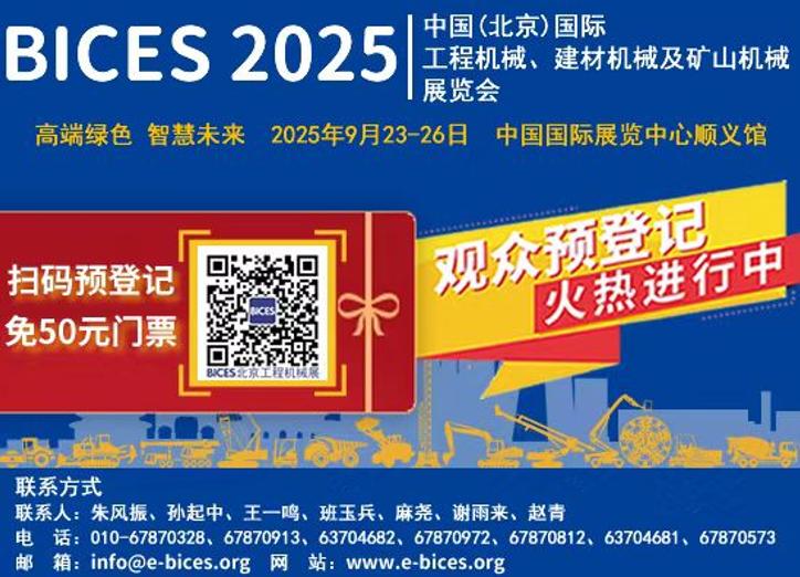 2025年9月23—26日,中國(北京)國際工程機(jī)械、建材機(jī)械及礦山機(jī)械展覽會(huì)(BICES 2025)將在中國國際展覽中心順義館舉辦。預(yù)計(jì)現(xiàn)場將匯聚超15萬人次來自國內(nèi)和全球工程機(jī)械、建材機(jī)械以及礦山、港口、交通、市政、水利、電力、化工等領(lǐng)域的用戶和觀眾,與展商朋友一起共襄盛舉。