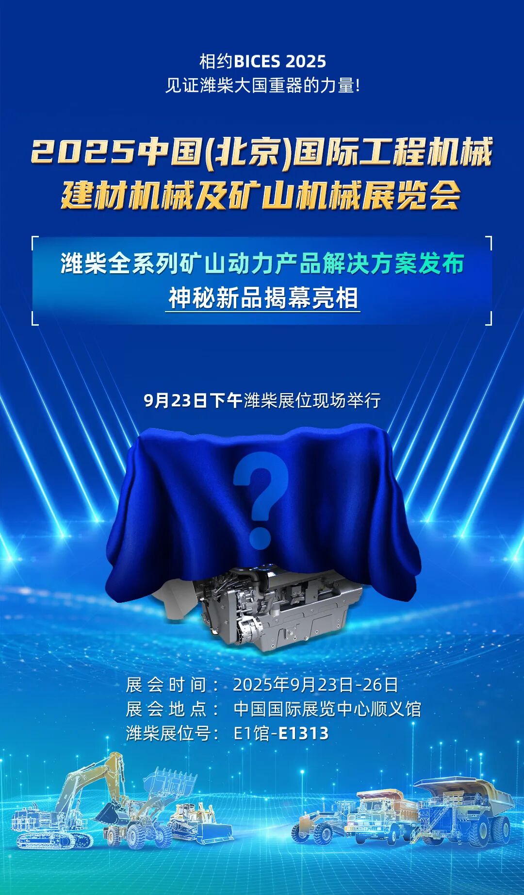 9月23日,全球工程機(jī)械行業(yè)矚目的2025中國(北京)國際工程機(jī)械建材機(jī)械及礦山機(jī)械展覽會(簡稱BICES 2025)震撼啟幕。濰柴攜全系列礦山動力產(chǎn)品解決方案重磅亮相,濰柴展位號:E1館-E1313,誠邀蒞臨。