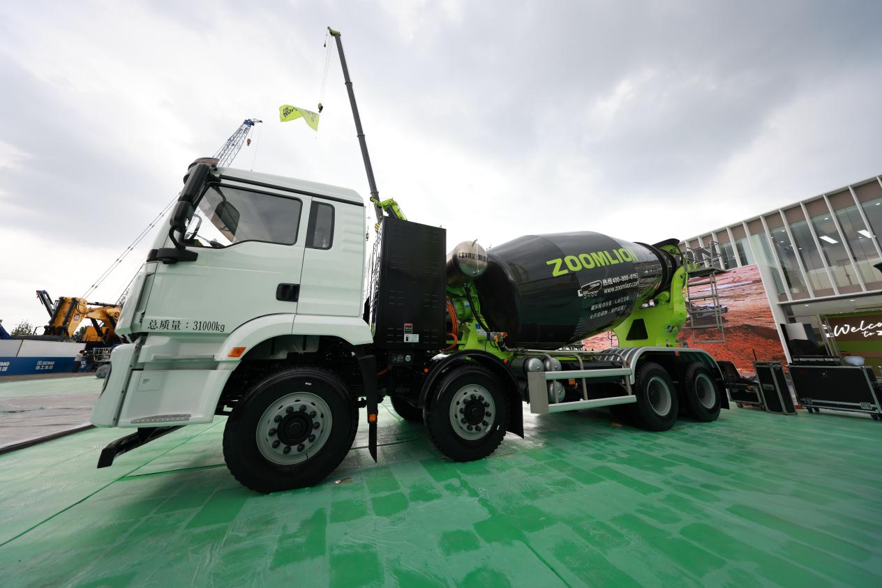 不遠處,中聯重科“凌冠”純電動攪拌車靜靜展示其零排放、低噪音的環保特性。工作人員介紹,該車綜合電耗僅1.5度/公里,支持雙槍快充,防水性能通過1.2米涉水驗證,確保在各種惡劣天氣下安全可靠運行,即使在城市夜間施工也可輕松滿足需求。其搭載的AI視覺盲區檢測系統等,可實現智能防撞與疲勞駕駛預警,觀眾紛紛感嘆其科技感十足。