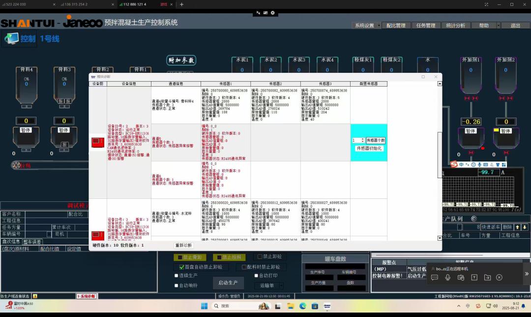(2)故障自診斷,質量更可靠。傳統模擬稱重傳感器若出現故障,往往難以快速檢測,尤其是在多個傳感器并聯使用的計量秤中,故障排查需要耗費大量人力與時間,極易因故障未及時處理導致混凝土配比偏差,導致混凝土出現質量問題,進而影響工程質量。山推數字傳感器控制系統搭載故障感知技術,可實時檢測各個數字傳感器的工作狀態,并迅速發現工作性能異常情況,發出報警,提醒操作員及時處置。這一功能從源頭避免了因設備故障引發的生產質量問題,為工地生產高品質混凝土提供了堅實保障。