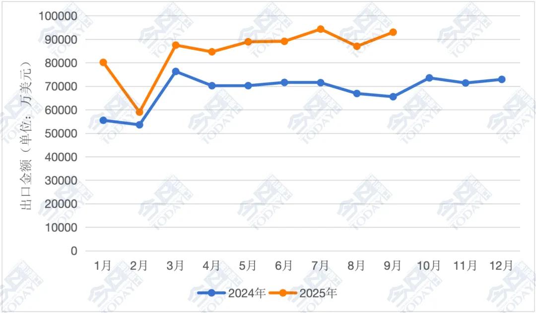 從環(huán)比情況來看,9月我國挖掘機(jī)出口情況整體呈上升趨勢。2025年9月我國挖掘機(jī)(含履帶挖掘機(jī)和輪式挖掘機(jī))出口總額達(dá)9.30億美元,較8月的8.70億美元上升6.90%。2025年9月較2024年同期的6.55億美元同比增長41.90%。