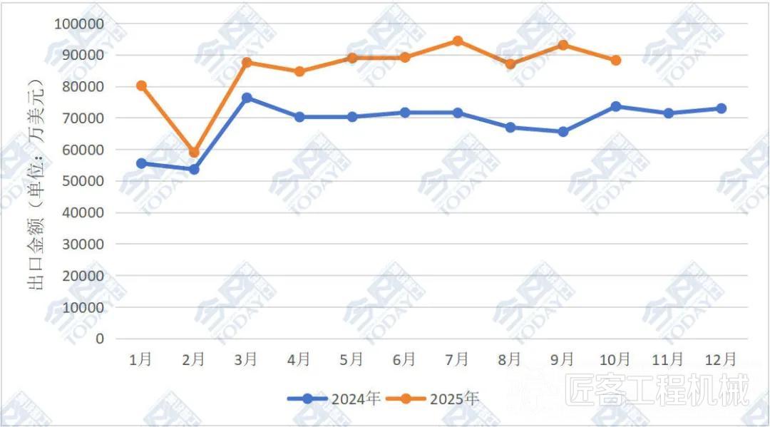 2025年1—10月中國工程機械產(chǎn)品進出口情況分析