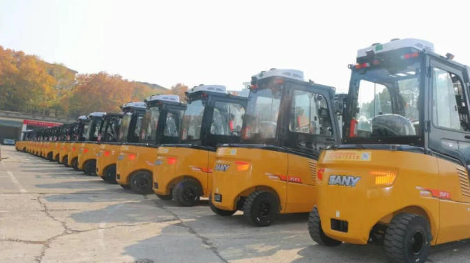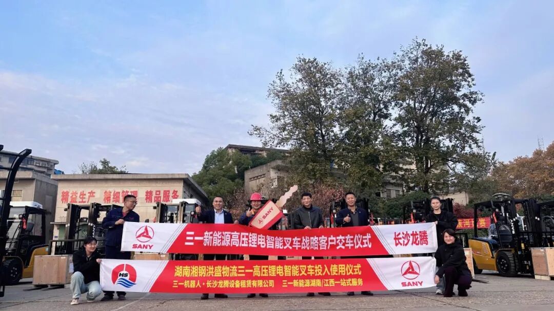 三一30臺(tái)電動(dòng)叉車批量交付湘鋼
