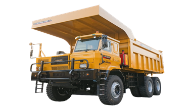 上午十點(diǎn),礦區(qū)的地面鋪著一層未化的積雪。三臺(tái)LT130SHEV增程礦卡等待著每5000公里的定期保養(yǎng)。