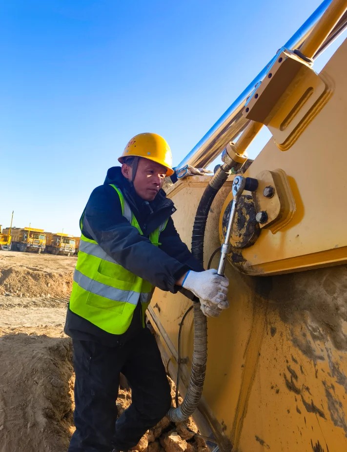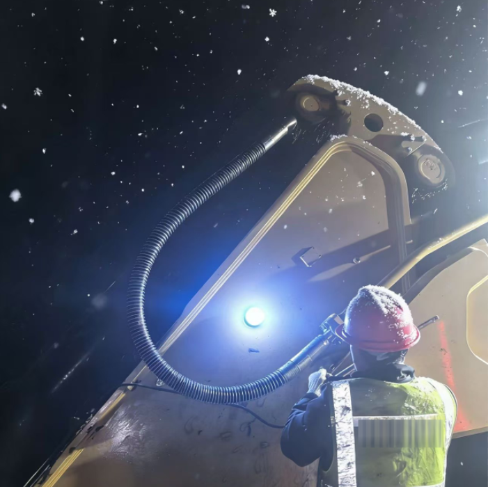 凌晨三點(diǎn),大雪覆蓋礦區(qū),一臺(tái)挖掘機(jī)靜立雪中。王師傅接到通知便驅(qū)車抵達(dá),凌晨四點(diǎn),所有預(yù)定的檢測(cè)項(xiàng)目完成。王師傅卻多停留了片刻——他注意到履帶漲緊度在極端低溫下略有變化。于是重新調(diào)整,確保設(shè)備在雪地作業(yè)時(shí)的最佳狀態(tài)。