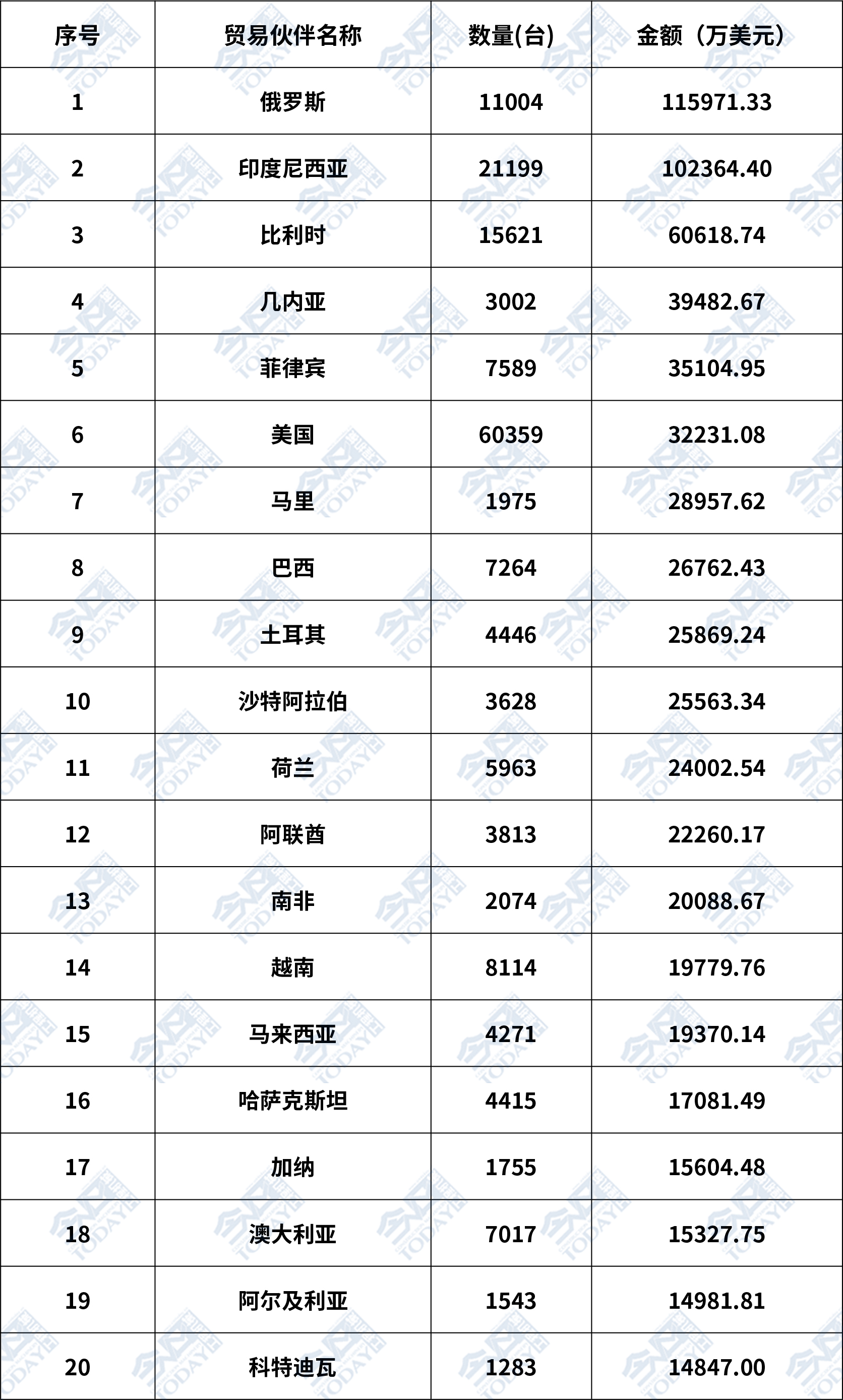 表2 2025年1—12月裝載機(jī)出口額排名前二十位國(guó)家和地區(qū)
