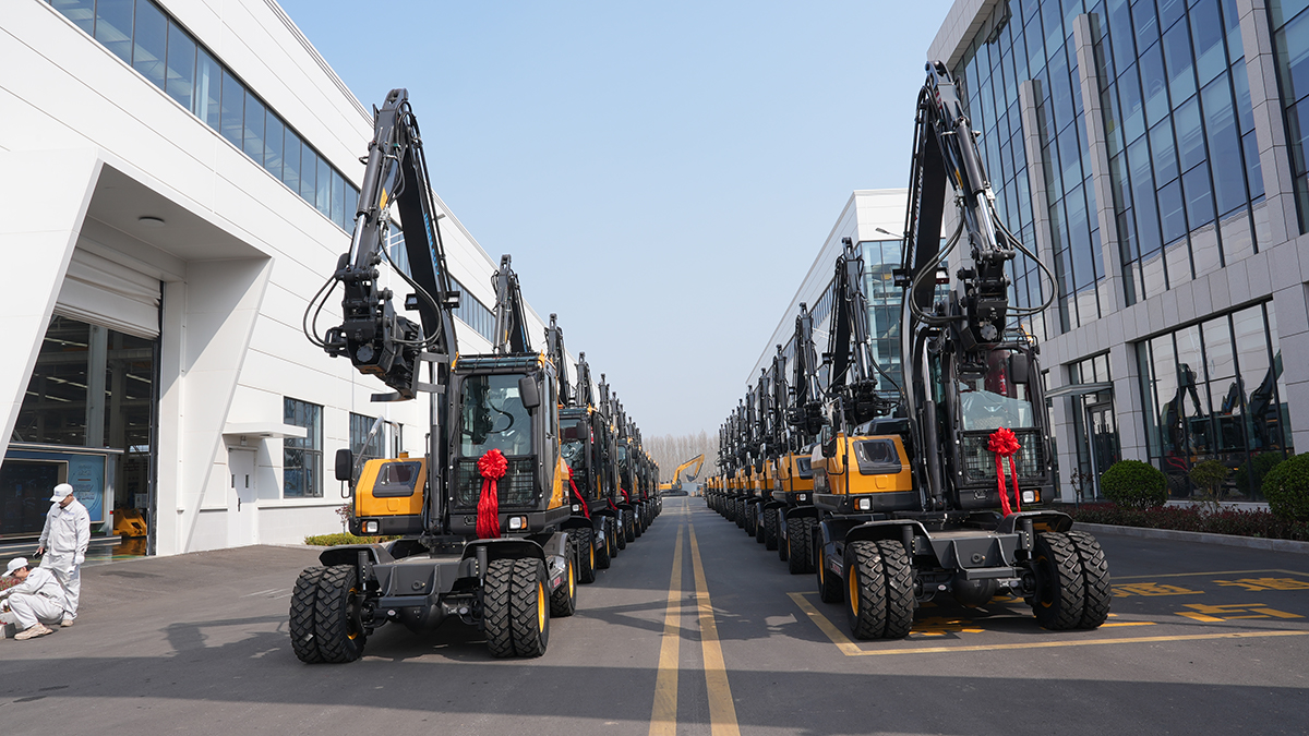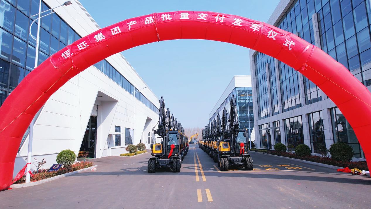 2026年3月21日,恒旺集團(tuán)綠色智能制造生產(chǎn)基地內(nèi),一場隆重的發(fā)車儀式在此舉行。這批次嶄新的HWL80輪式挖掘機整齊列隊,正式啟程發(fā)往海外市場。