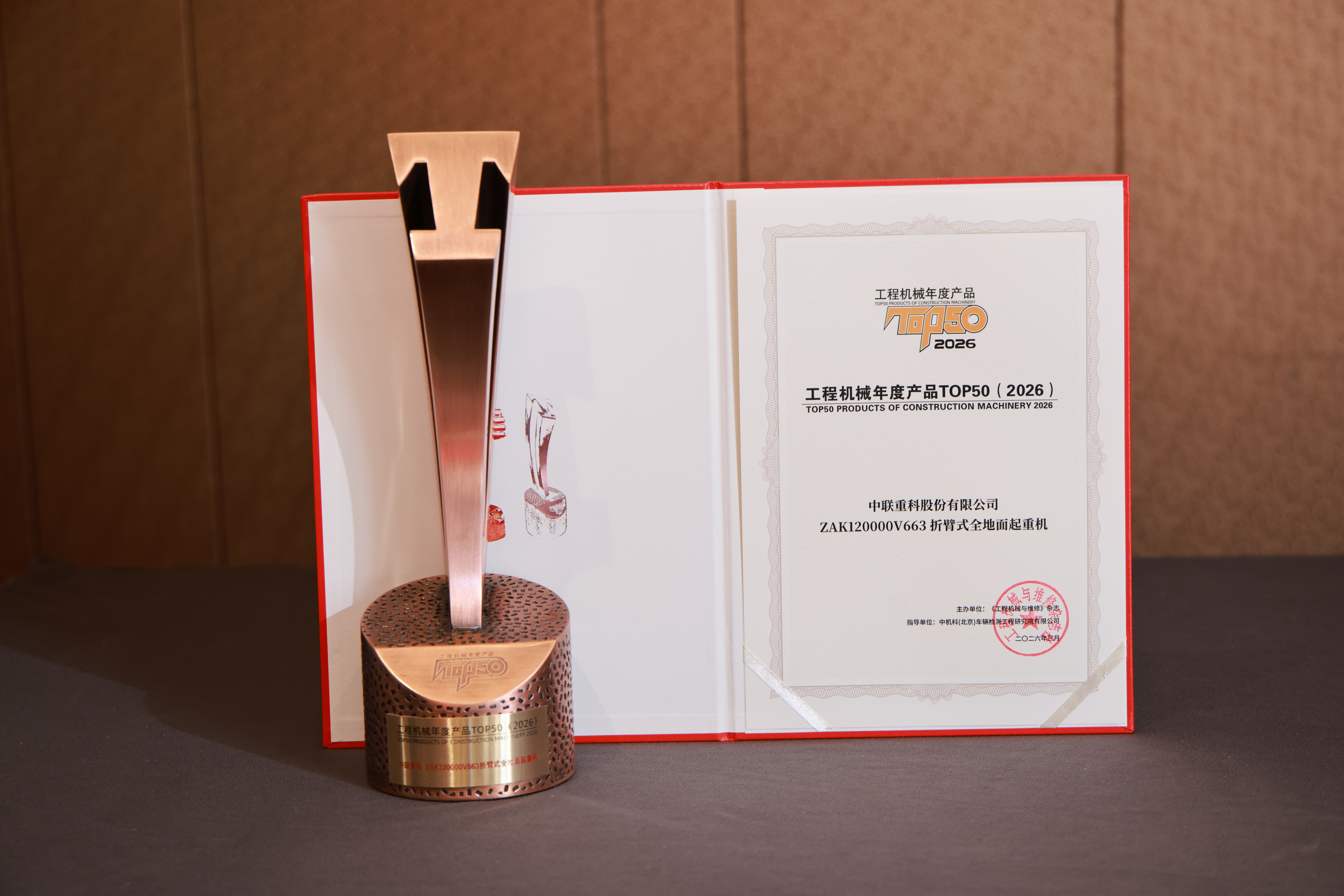 2026CM TOP50丨中聯(lián)重科ZAK120000V663折臂式全地面起重機(jī)榮獲2026工程機(jī)械年度產(chǎn)品TOP50獎(jiǎng)