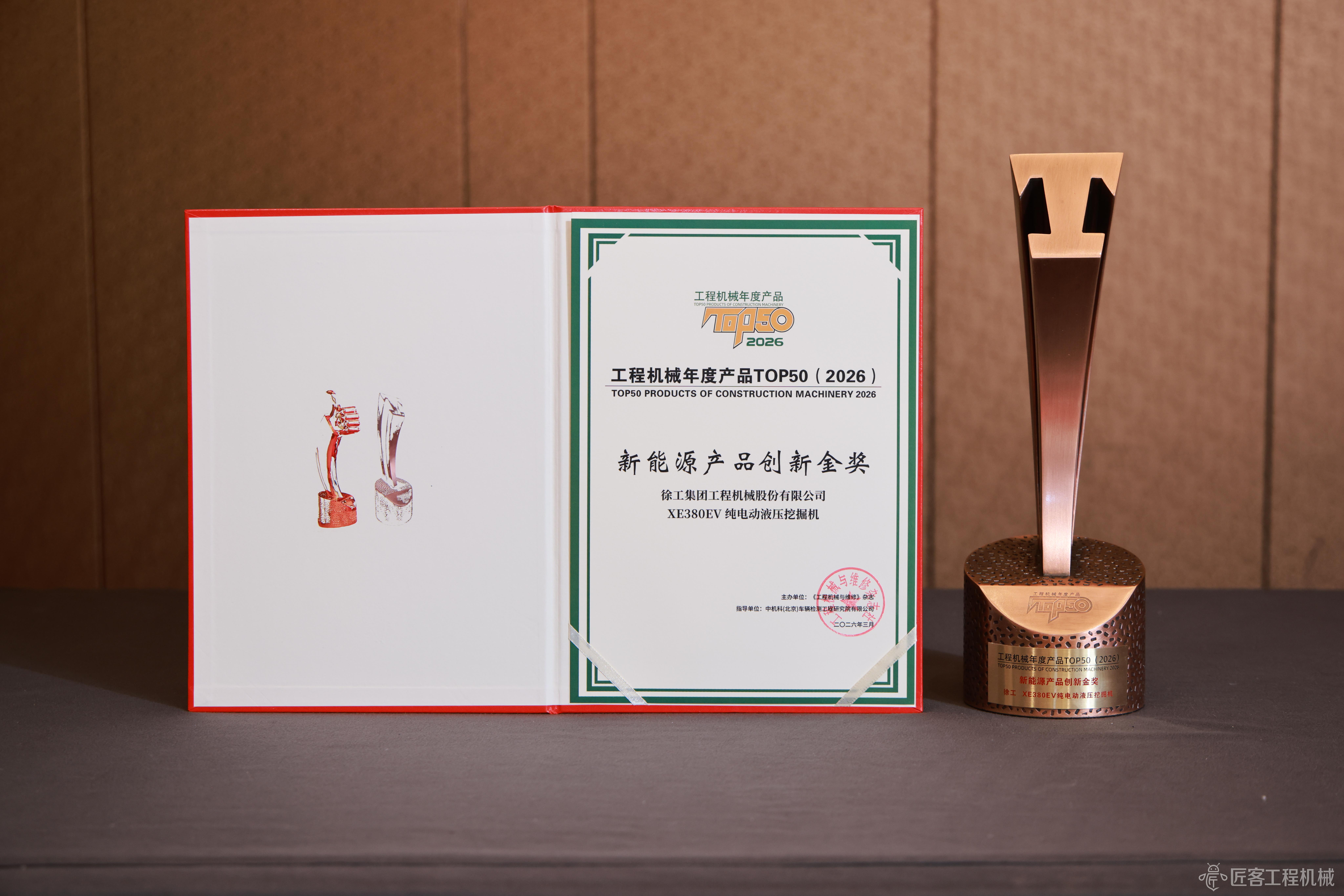 2026CM TOP50丨徐工XE380EV純電動液壓挖掘機榮獲2026工程機械年度產(chǎn)品新能源產(chǎn)品創(chuàng)新金獎