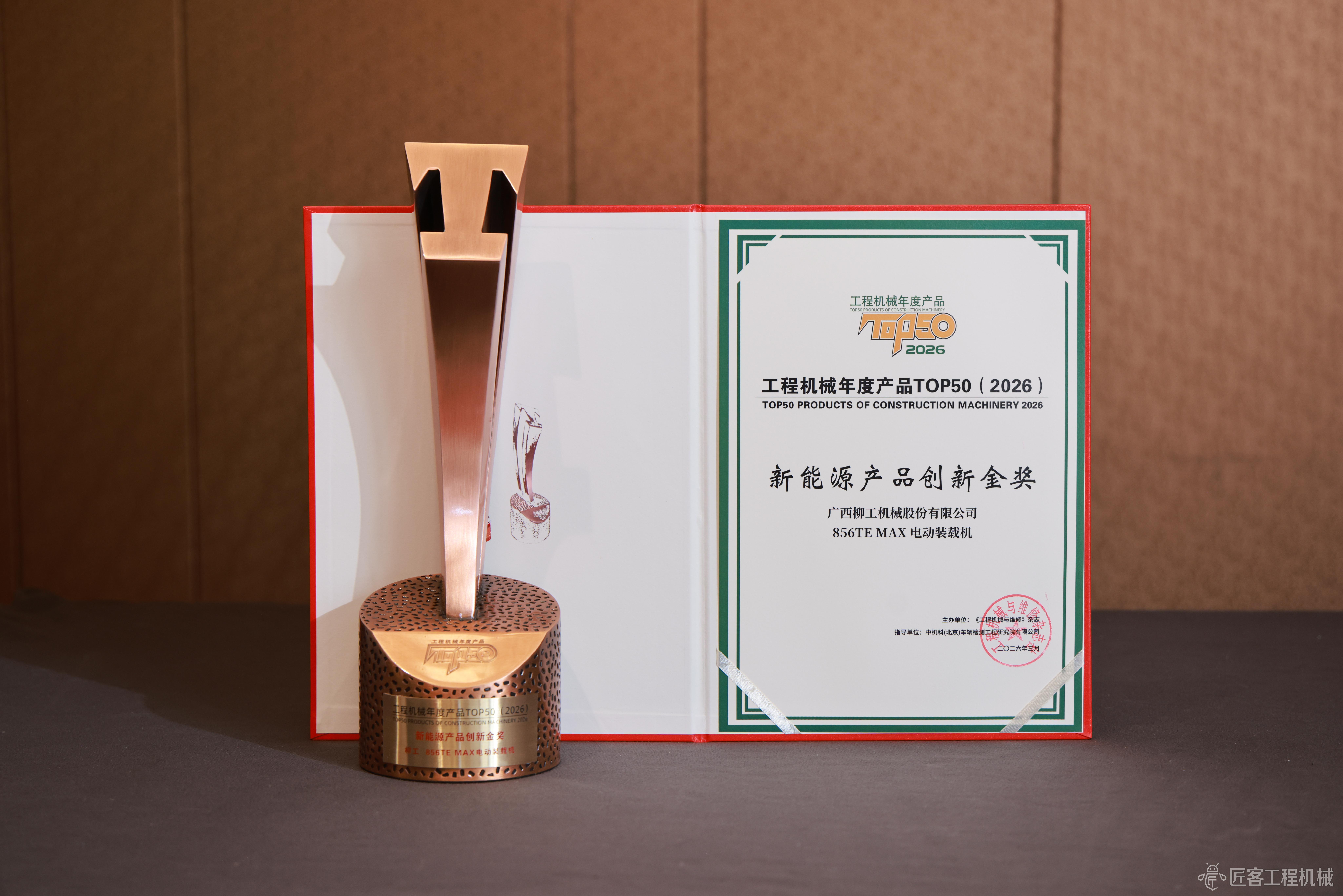 2026CM TOP50丨柳工856TE MAX電動(dòng)裝載機(jī)榮獲2026工程機(jī)械年度產(chǎn)品新能源產(chǎn)品創(chuàng)新金獎(jiǎng)