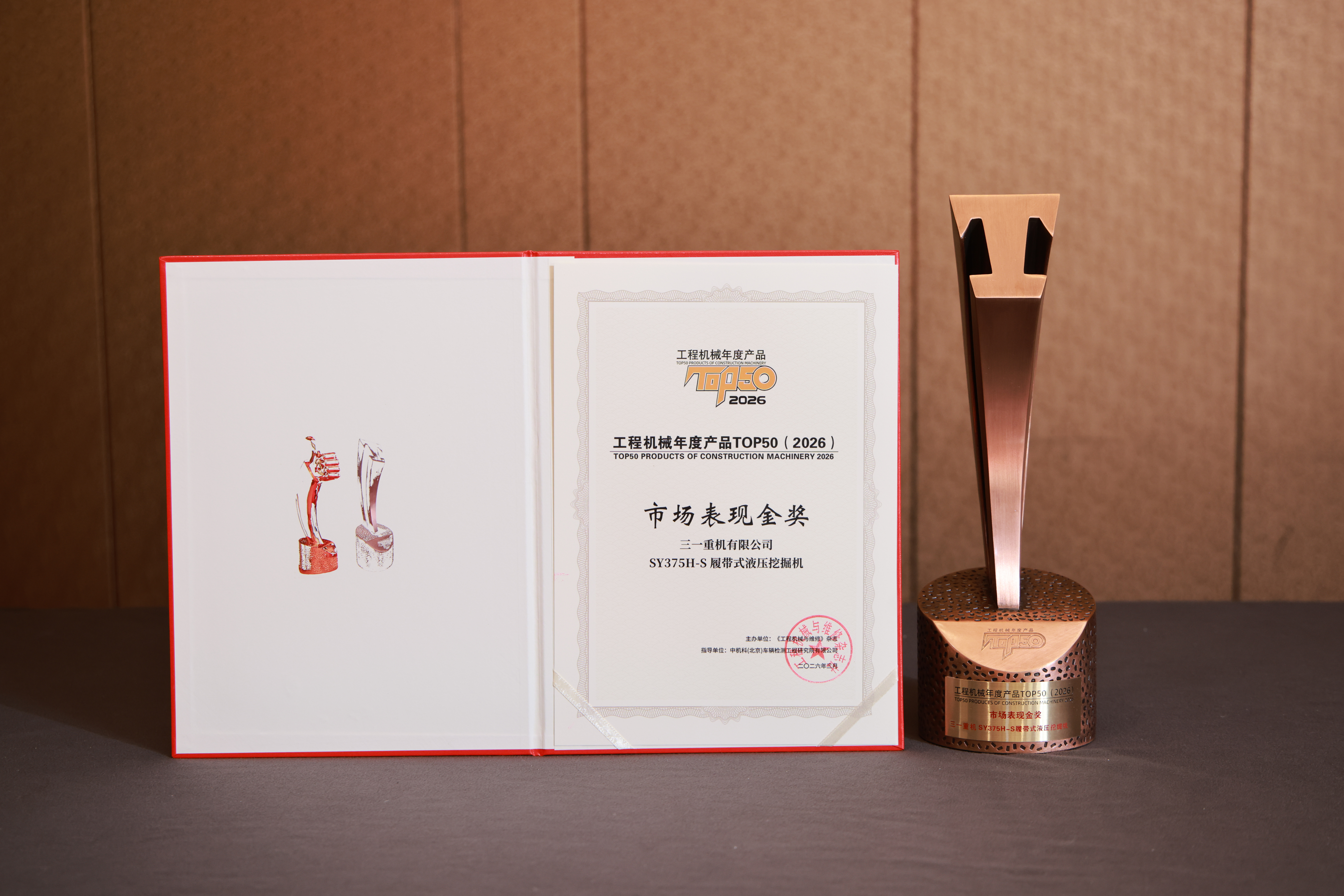 2026CM TOP50丨三一重機(jī)SY375H-S履帶式液壓挖掘機(jī)榮獲2026工程機(jī)械年度產(chǎn)品市場(chǎng)表現(xiàn)金獎(jiǎng)