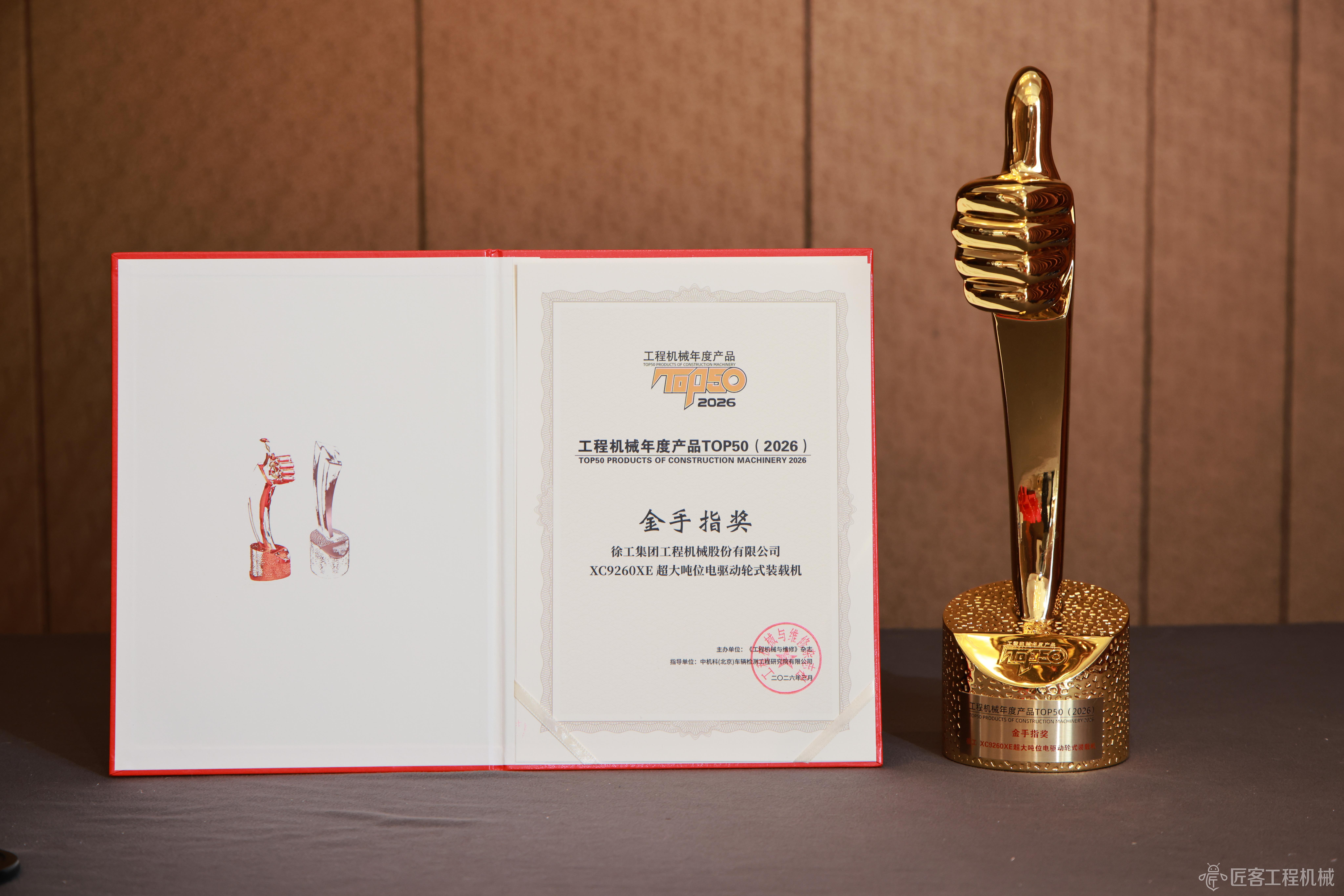 2026CM TOP50丨徐工XC9260XE超大噸位電驅(qū)動輪式裝載機榮獲2026工程機械年度產(chǎn)品金手指獎