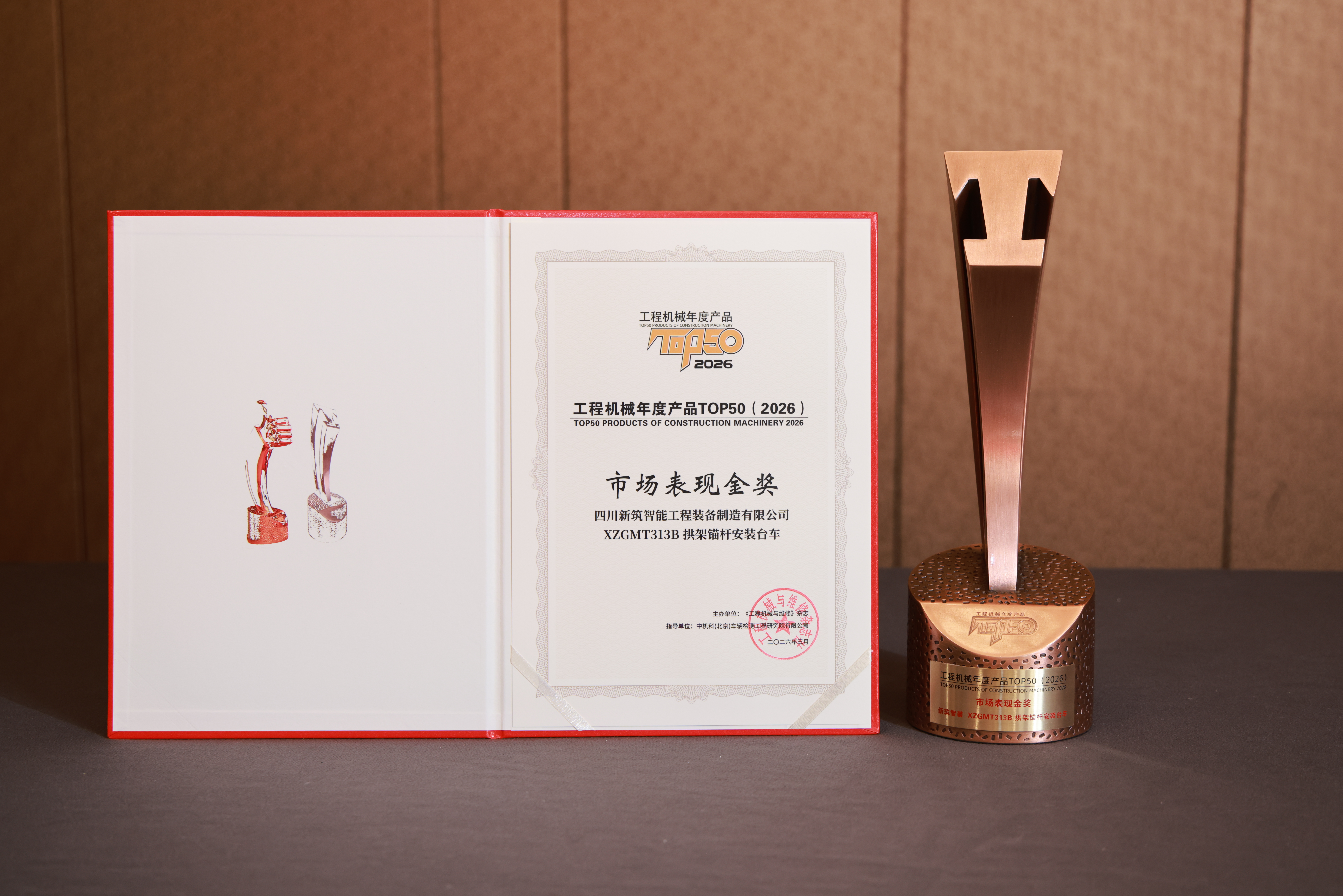 2026CM TOP50丨新筑智裝XZGMT313B 拱架錨桿安裝臺車榮獲2026工程機械年度產(chǎn)品市場表現(xiàn)金獎