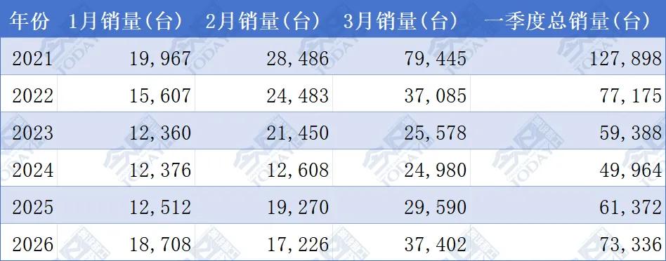 2026年一季度,我國(guó)挖掘機(jī)累計(jì)銷量達(dá)到73336臺(tái),相比2025年同期的61372臺(tái),實(shí)現(xiàn)了19.5%的同比增長(zhǎng)。從歷史數(shù)據(jù)來(lái)看,今年一季度的銷量不僅為近四年同期最高,也進(jìn)一步鞏固了自2024年以來(lái)行業(yè)逐步回暖的增長(zhǎng)態(tài)勢(shì)。