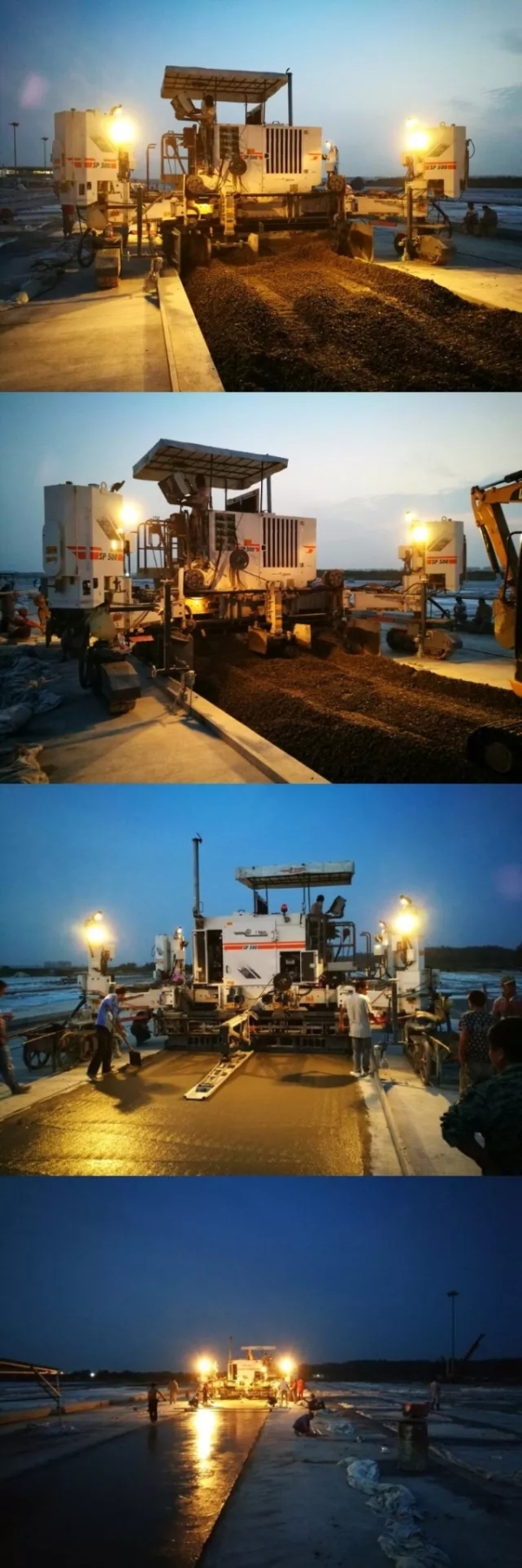 由于白天天氣炎熱,所以機(jī)手們在夜間也會照常進(jìn)行施工。