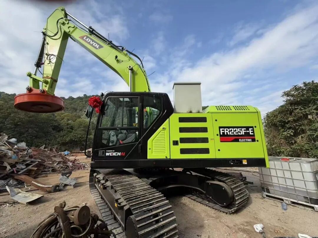 活動現場,雷沃FR215F-E純電挖掘機成為全場的焦點,作為雷沃新能源產品矩陣的核心機型之一,其搭載濰柴三電系統,大容量電池續航6-10小時,滿足全天候作業需求,實現作業零排放、低噪音,徹底解決廢鋼廠區尾氣污染與噪音困擾;搭配廢鋼抓斗、大力剪等屬具,完美適配廢鋼拆解、物料抓取等環節,動力強勁,節能高效,3年使用成本可節省超百萬元。